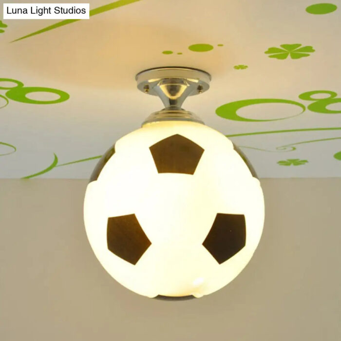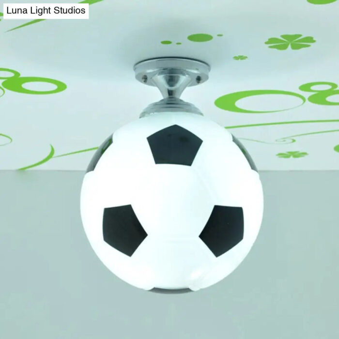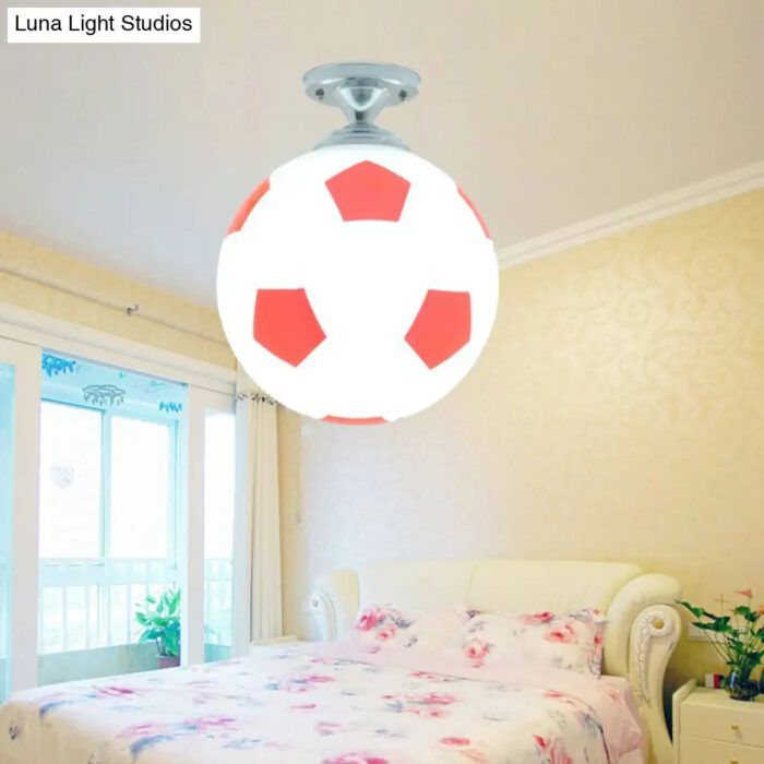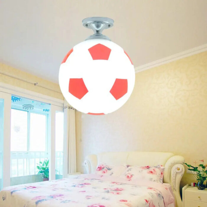 This Creative Childrens Football Flushmount Light is a perfect addition to any kid’s room. The semi-flush mount ceiling light comes with an opaque glass shade, giving it a modern look. The glass shade gives the kids room an overall feel of simplicity and sophistication, while remaining age-appropriate for kids. The light features one head light, with a bright and cheerful LED bulb. The light is available in three colors: Blue-White, Red-White, and Black-White. It also fits in 10 to 14 inch ceilings, making it great for a variety of rooms sizes.