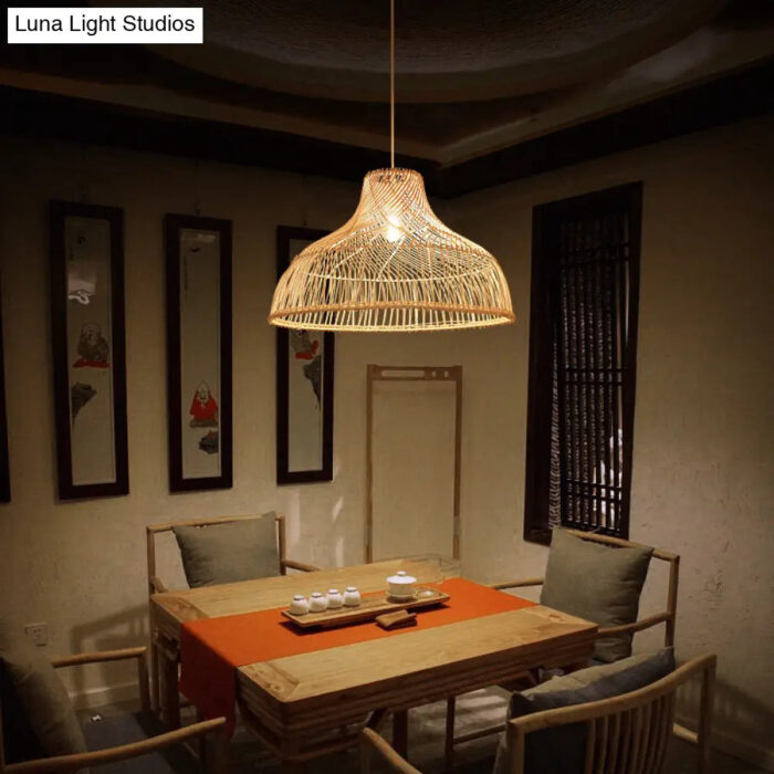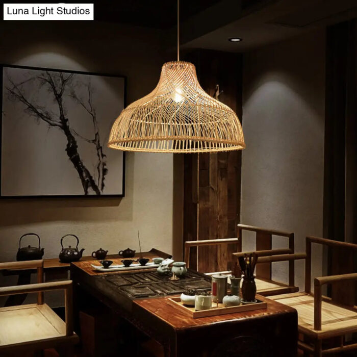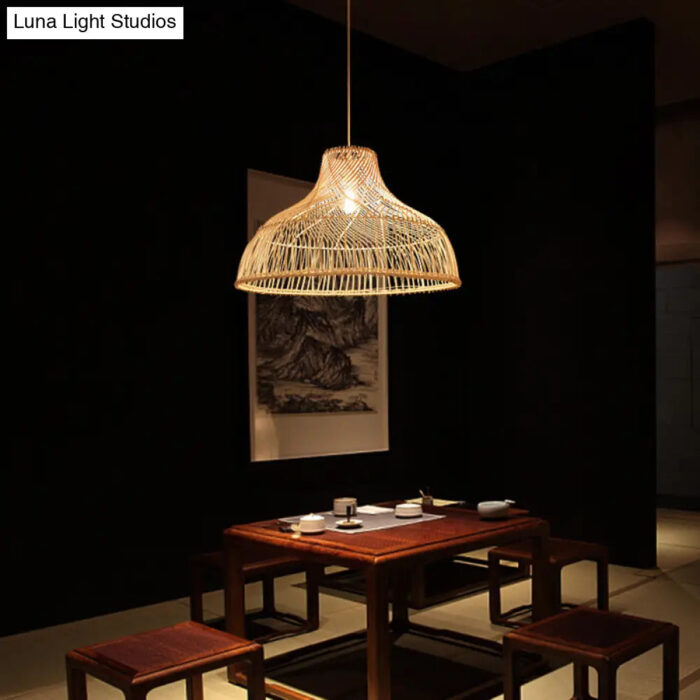This is a beautiful Hat Shape Pendant light made from Rattan material in wood color. It is a perfect light for your tea room with a single-bulb suspended design. The dimensions are: 16′ 19.5′ 23.5′ for the fixture width, height and size. The chain/cord length is 39.5′ and the canopy shape is round. The bulb is not included but it takes an E26/E27 base and can be LED, incandescent or fluorescent.